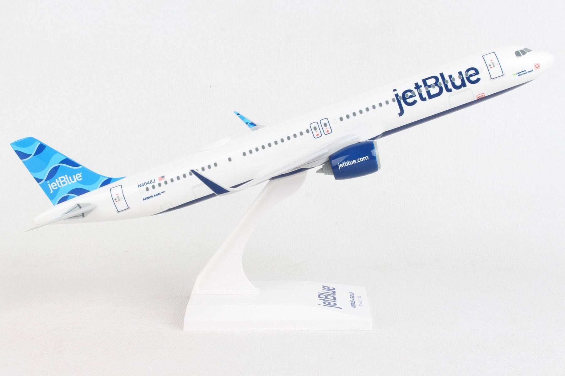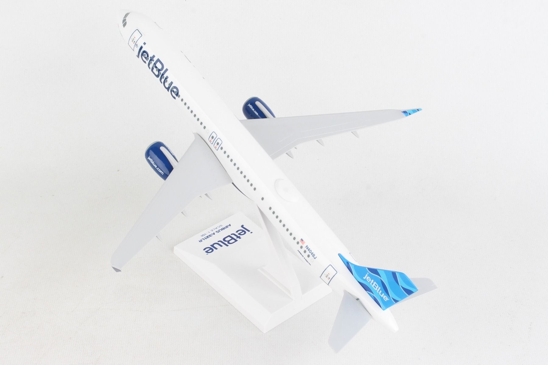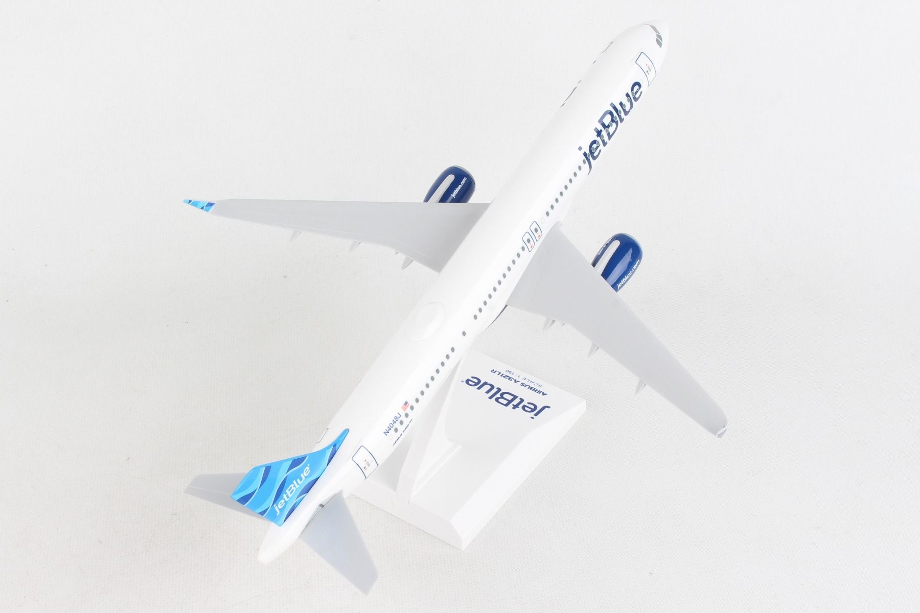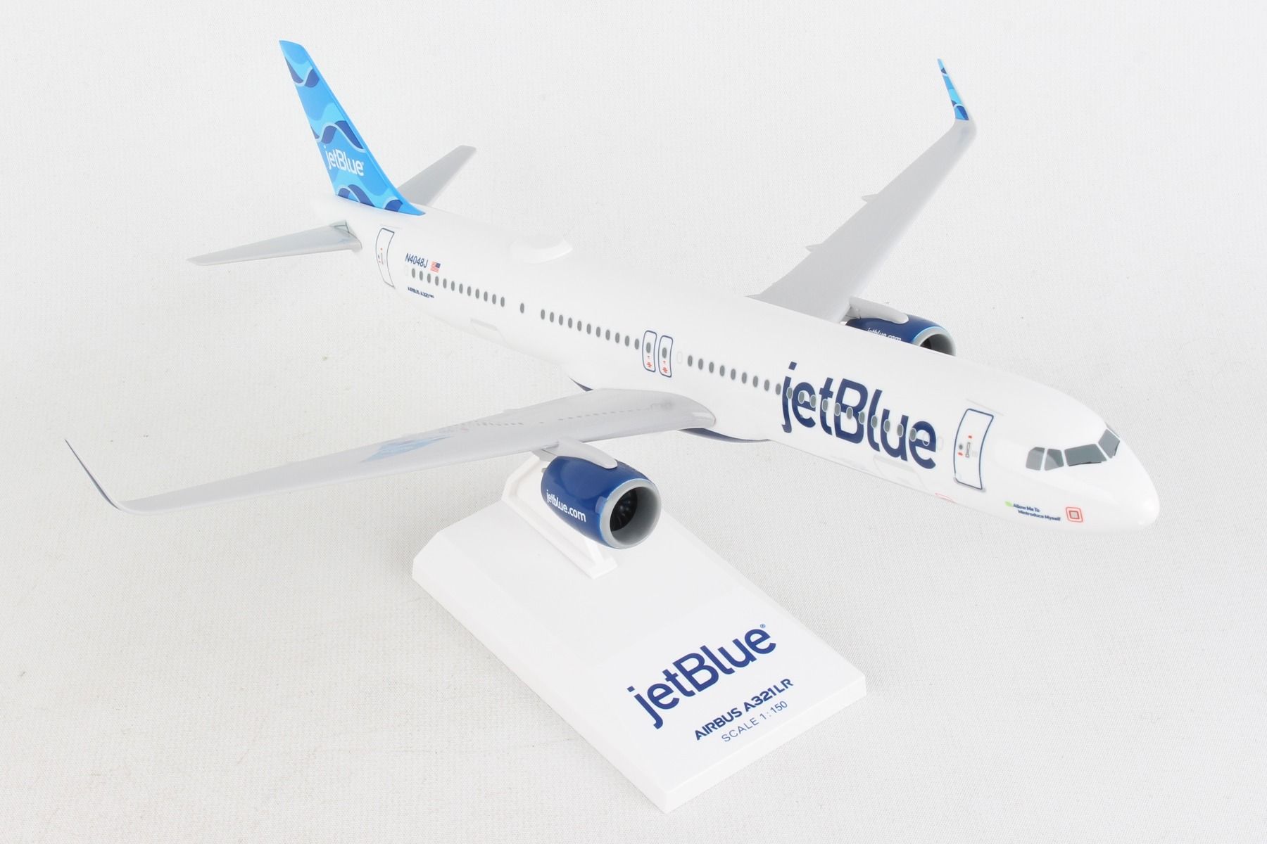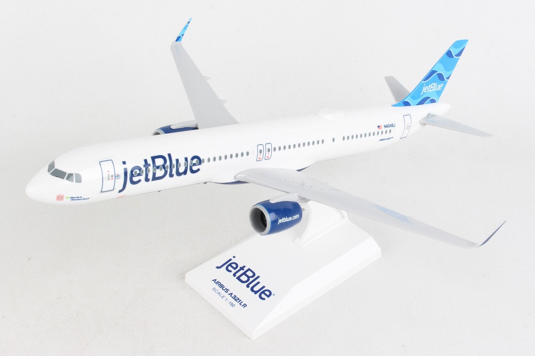 Comprising superior quality, substantial, solid injection molded plastic components with a simple snap-fit design that allows for easy assembly without the need for glue, this SkyMarks 1/150 Scale jetBlue Airbus A321neo LR - with its tail painted in its Allow Me to Mintroduce Myself livery - Registration N4048J - measures approximately 11-5/8-inches long with a 9-5/8-inch wingspan and comes complete with a Display Stand. An accurate, true-to-scale reproduction of the actual aircraft, this jetBlue Airbus A321neo, which is manufactured as an officially licensed product, is great for collectors and features authentic, highly detailed graphics and markings.
